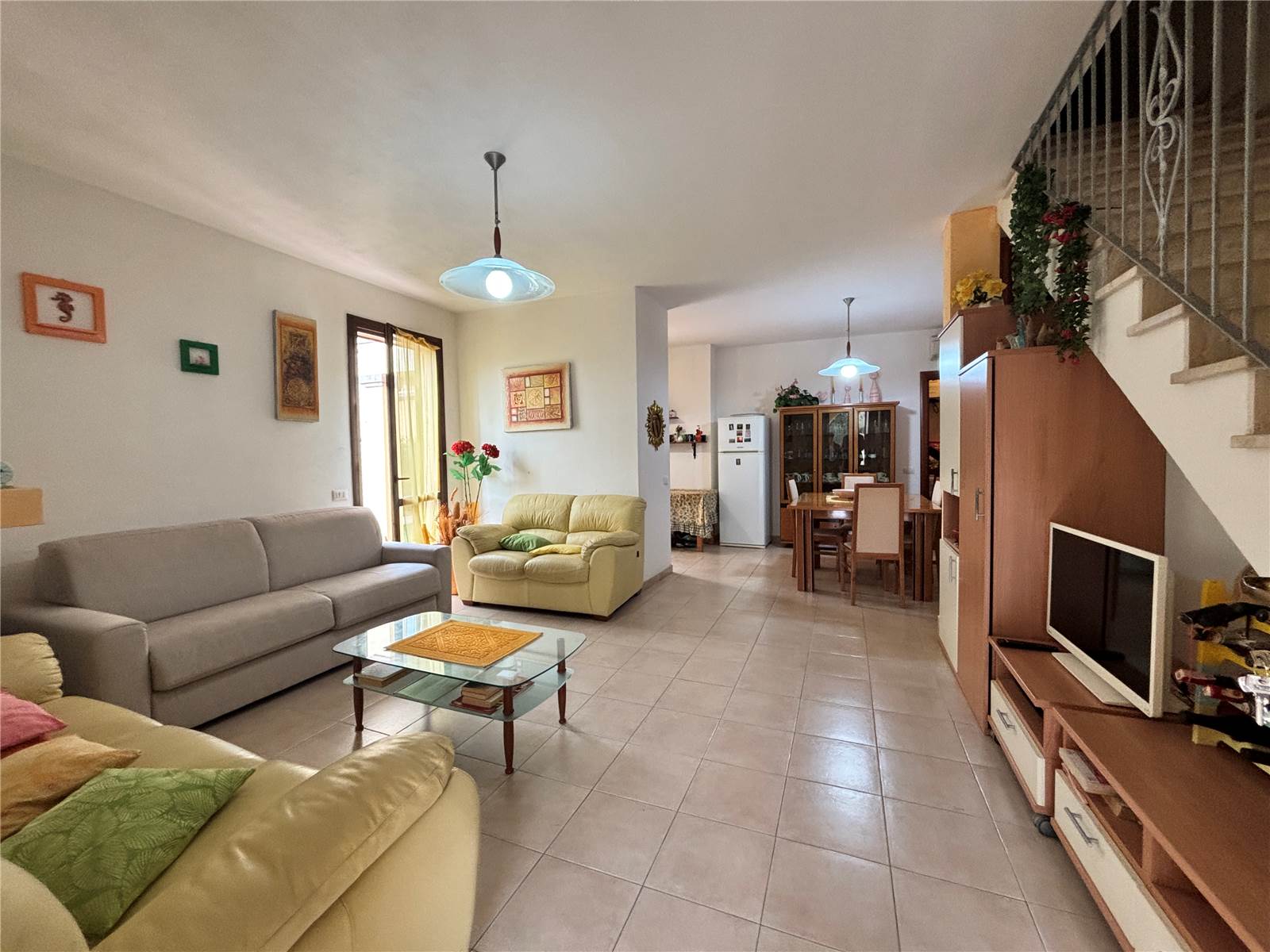 Al piano terra troviamo un ampio soggiorno con camino ed accesso all'ampio loggiato, ideale per momenti di relax e convivialità, con zona cottura riservata, disimpegno e bagno.