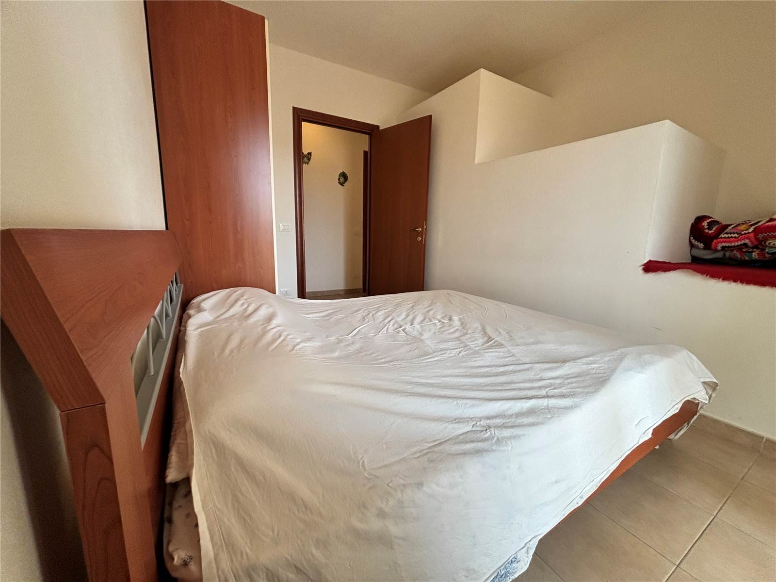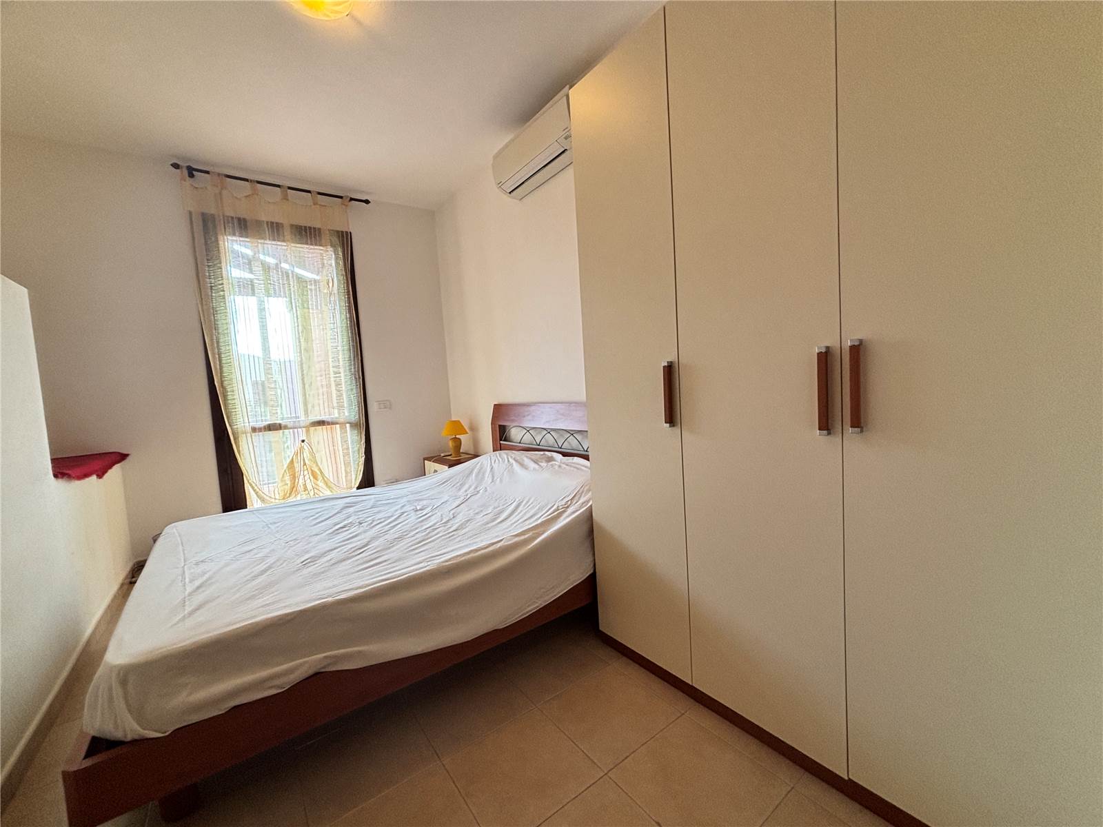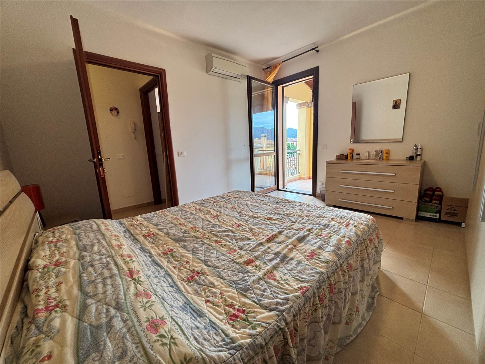 una camera matrimoniale con accesso a una grande veranda, perfetta per colazioni all’aperto o momenti di relax;