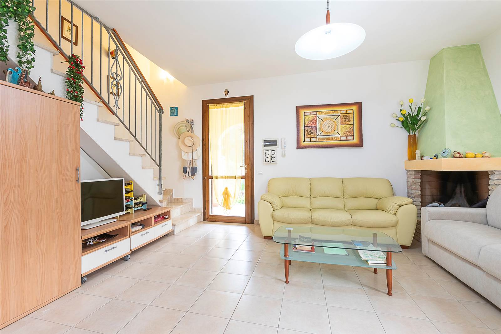 Al piano terra troviamo un ampio soggiorno con camino ed accesso all'ampio loggiato, ideale per momenti di relax e convivialità, con zona cottura riservata, disimpegno e bagno.