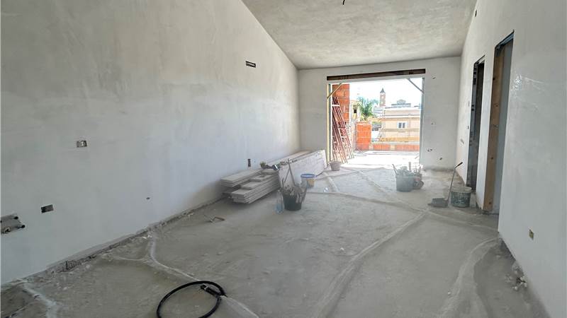 Soggiorno luminoso con angolo cottura open space, due bagni entrambi finestrati, camera da letto singola, camera matrimoniale con cabina armadio, ripostiglio, balcone e ampia terrazza attrezzabile.